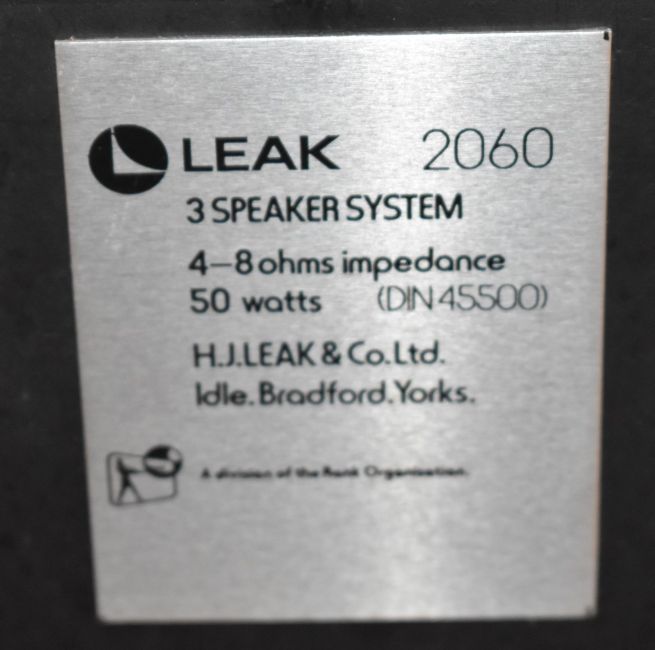 A pair of Leak 2060 50 watt speakers, serial numbers 256657 and 263559