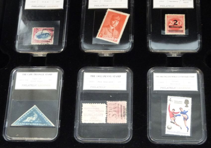 Two boxed 'Philatelic Legends' stamps in 24 individual presentation cases.