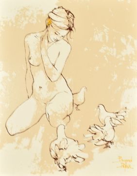 Bernard Dufour (1922-2016) three oil on board portraits of women including a nude, each signed lower right 47 x 37cm, in wooden frames