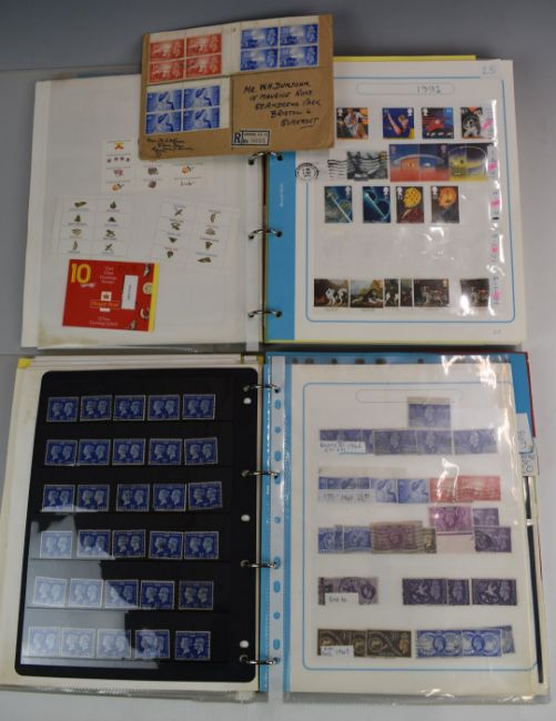 GB mint and used stamp collection in eight folders from QV to QEII including postal history, banknotes etc. High face value.