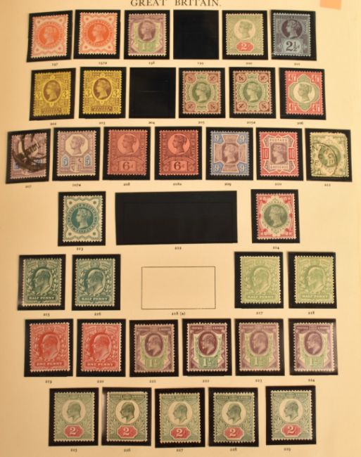 A mint and used GB stamp collection in two Windsor albums, two stockbooks and loose from QV 1840 1d black four clear margins, red MX, QV SP, a good selection of mint QV & KEVII Jubilee stamps to 1/-, KGV including M Seahorses, KGVI including 10/- dark blue M, then on to QEII U/M inc presentation packs and stamps to high values £5, £10, Mint booklets etc. A good accumulation with high face value.