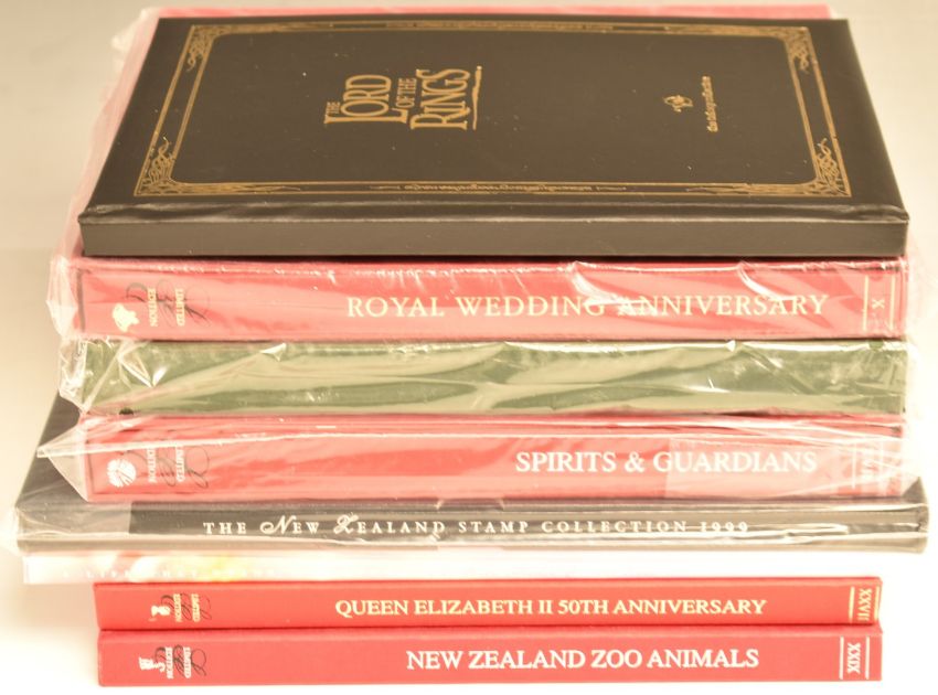 Eight New Zealand limited edition books comprising Queen Elizabeth II 50th Wedding Anniversary 1997, Racehorse 1996, Spirits and Guardians 2000, New Zealand Collection 1999 Prestige Album, Queen Mother 2000, Trilogy Collection Lord of the Rings 2004, Queen Elizabeth II 2003 and New Zealand Zoo Animals 2009