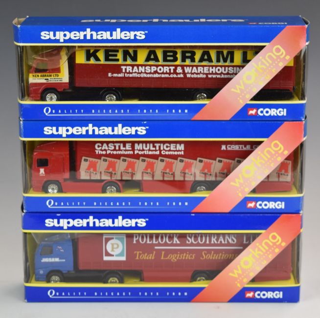 Twenty-Four Corgi Superhaulers 1:64 scale diecast model lorries including Woolworths Superhauler, ERF Box Trailer Royal Mail, Renault Car Transporter and Volvo Box Trailer Ginsters, all in original boxes.