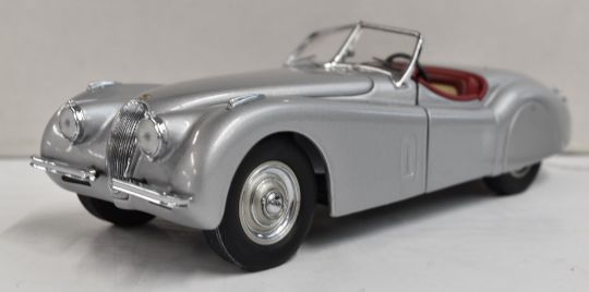 Three Franklin Mint diecast model Jaguar cars comprising SS100, XK 120 1952 and E Type 1961, all in original boxes, some with certificates, brochures etc.