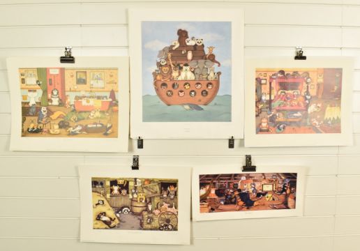 Four Linda Jane Smith signed limited edition novelty cat prints comprising 'Old Cat Donald's Farm' 348/850, 'Boudoir Bedlam' 726/750, 'It's a Dogs Life' 510/600 and Noah's Ark' 460/850