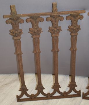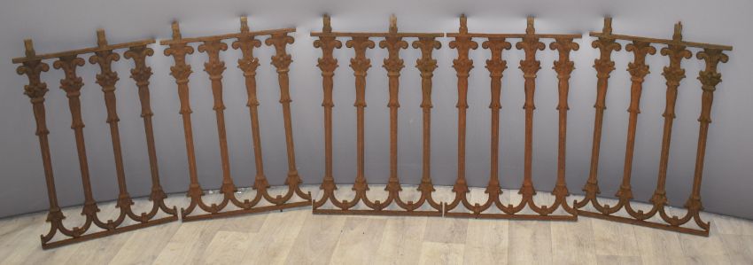 Five Victorian cast iron railing panels, possibly by Coalbrookdale or similar, each 62 x 41cm