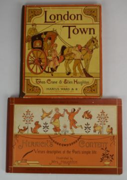 Herrick's Content - His Grange & His Book of Littles with Verses by Robert Herrick & Illustrated by Ellen Houghton published Marcus Ward (c.1884) illustrated in full colour in cloth backed pictorial boards WITH copy of London Town by Thomas Crane & Ellen Houghton published Marcus Ward (c.1881) cloth backed colour boards (piece cut from endpaper) (2)