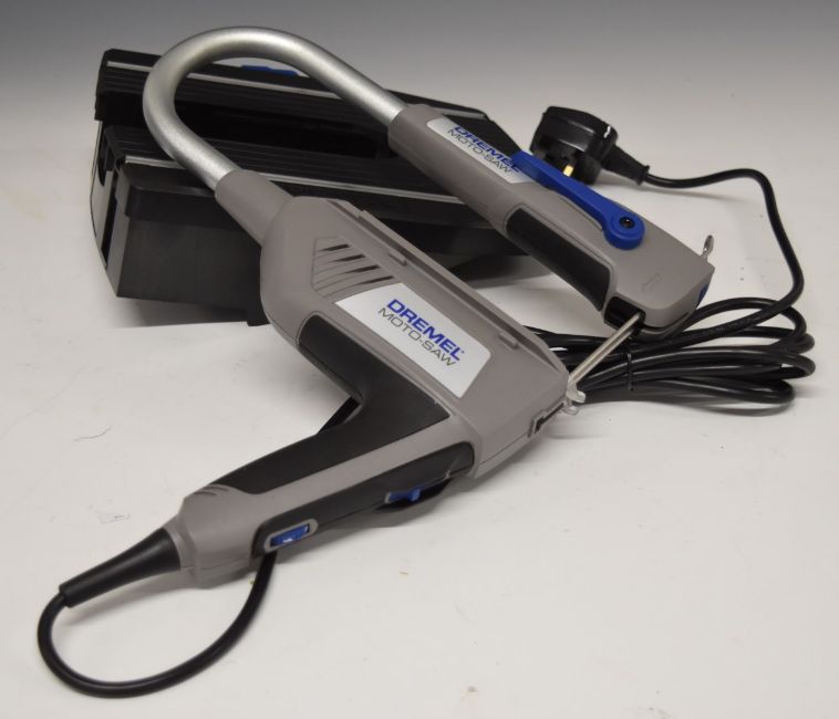 Hychika LS-190C circular saw, Tilswall 5313 belt sander, Silverline 150W bench grinder and Dremel MS20 Moto-Saw
