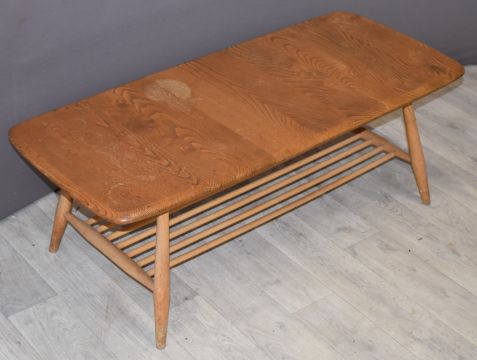 Ercol light elm coffee table with rack below, L105 x D46 x H36cm