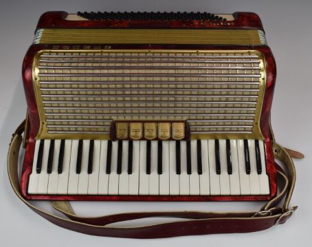 Hohner Arietta IV M 120 bass piano accordion with 20 bass buttons, 41 treble keys and three voice tremolo tuning