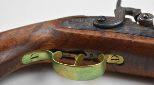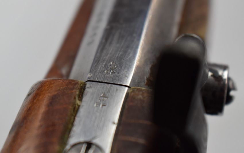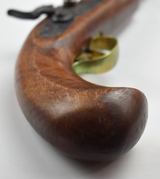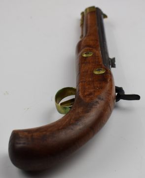 Jukar of Spain .45 percussion hammer action pistol with engraved locks and hammer, brass trigger guard and mounts, brass tipped wooden ram-rod and 9.5 inch octagonal barrel, overall length 40cm, serial number 129113. PLEASE NOTE THAT A VALID RELEVANT FIREARMS/SHOTGUN CERTIFICATE IS REQUIRED TO HANDLE/PURCHASE THIS ITEM.