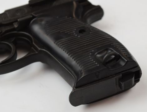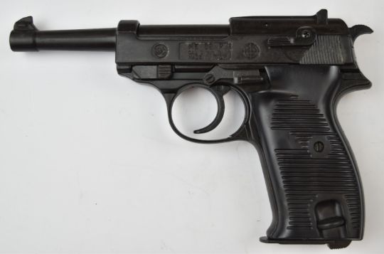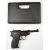 BBM Bruni ME 38 P 8mm blank firing Webley pistol with shaped grips and multi-shot magazine, in fitted case with Fiocchi blank cartridges.