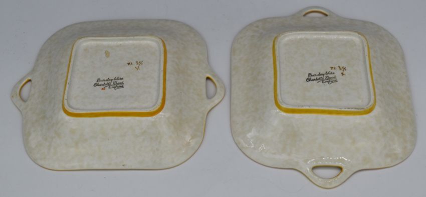 Charlotte Rhead for Crown Ducal pair of twin-handled tubelined dishes, 28 x 23cm
