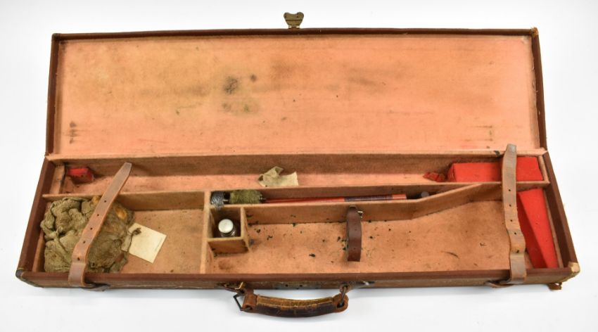 Two leather bound canvas shotgun cases, both with fitted interiors, one with 'SR Jeffery & Son Ltd 137 High St & Turns Gate Guildford' label together with a leather shotgun cartridge belt.