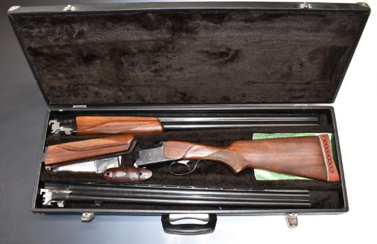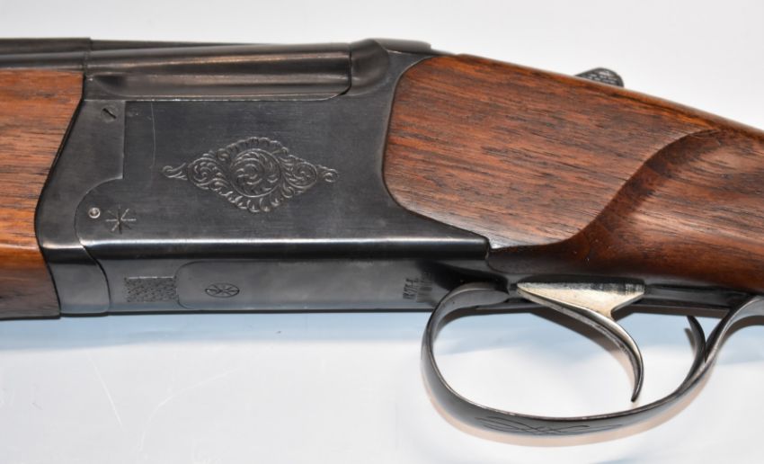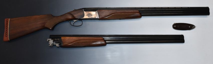 Baikal NX-27E-IC 12 bore over and under ejector shotgun with engraved lock, and trigger guard, single trigger, chequered semi-pistol grip and forends, vented top rib and 26 barrels choked cylinder and improved cylinder and 28 inch barrels choked ¾ and full, overall length 111-116cm, length of pull 37cm, serial number C00562, in fitted Baikal case with related paperwork and accessories. PLEASE NOTE THAT A VALID RELEVANT FIREARMS/SHOTGUN CERTIFICATE IS REQUIRED TO HANDLE/PURCHASE THIS ITEM.