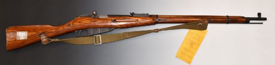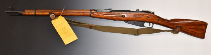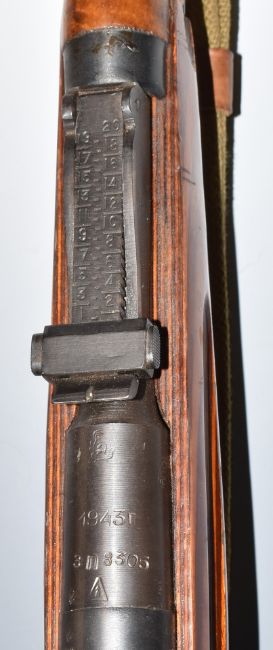 Deactivated Russian Mosin Nagant 7.62 bolt-action rifle with adjustable sights, canvas sling, top plate dated 1943 and 29.5 inch barrel, overall length 122.5cm, serial number 8305, with deactivation certificate dated 28/01/22.