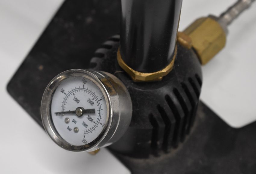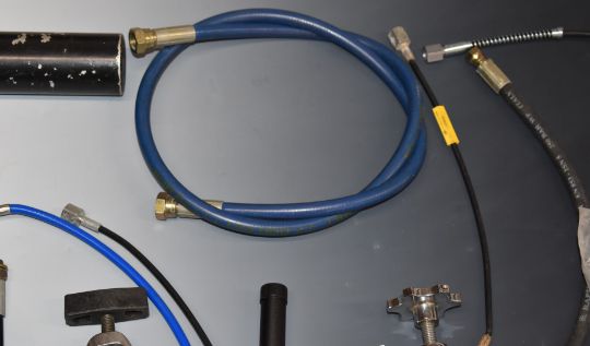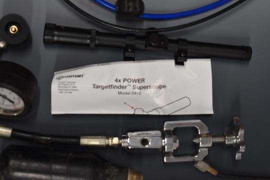 A collection of air rifle and bottle parts and accessories including filling loops, gauges, PCP bottles, Gunpower pump etc