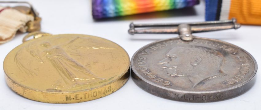 WW1 nurse's medals comprising War and Victory Medals named to M E Thomas together with three Red Cross medals and a set of WW2 miniature medals