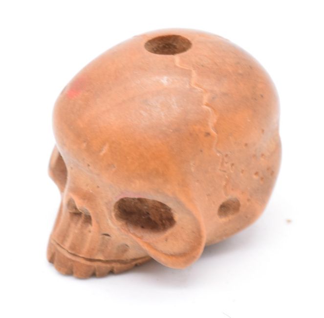Chinese sandalwood netsuke in the form of a skull, Chinese carved jade phoenix, Chinese yellow metal bead and a carved nut in the form of an elder