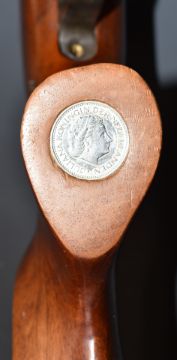 Theoben .22 air rifle with chequered semi-pistol grip and forend, adjustable trigger, raised cheek piece to the stock, sound moderator, coin inset to the grip butt and scope mounts, serial number TB4362.
