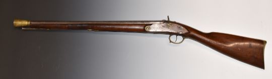 Unnamed percussion hammer action blunderbuss with brass trigger guard, butt plate, mounts and muzzle, steel ram-rod and 24 inch barrel, overall length 101.5cm