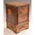 Japanese early 20thC smoker's cabinet with inlaid decoration including Mount Fuji and chrysanthemums, each side opening to reveal a fitted interior and drawer below, 28cm tall.