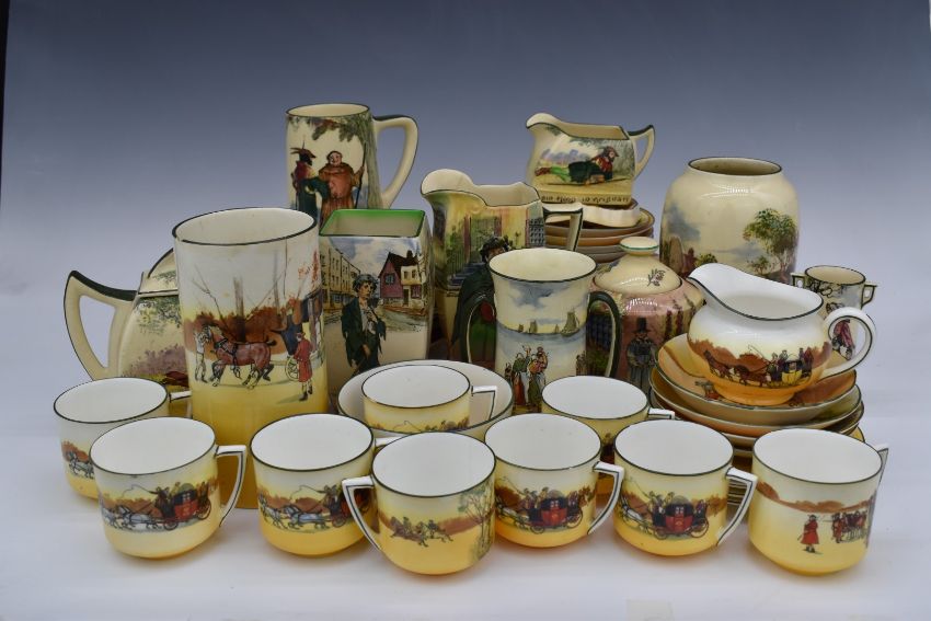 Large quantity of Royal Doulton Seriesware including Under the Greenwood Tree, Gaffers, coaching scenes, Dickens etc, tallest 18cm