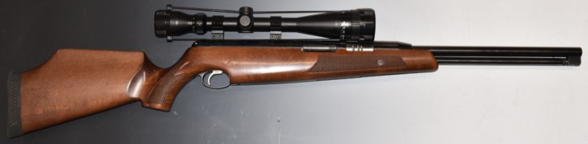 Air Arms TX200 .22 under-lever air rifle with chequered semi-pistol grip, adjustable trigger, raised cheek piece and Hawke Airmax 6-19x44 AO scope, serial number 048120.