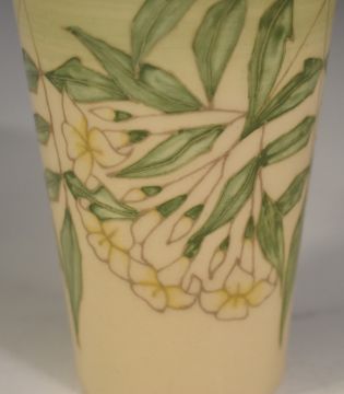 Dennis Chinaworks signed limited edition 9/32 flute vase decorated with jasmine, H16.5cm