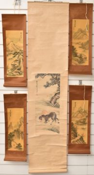 Eleven Chinese 19th/20thC scroll paintings, largest 152 x 50cm