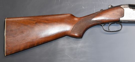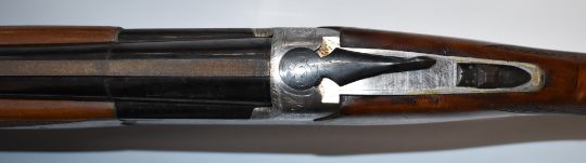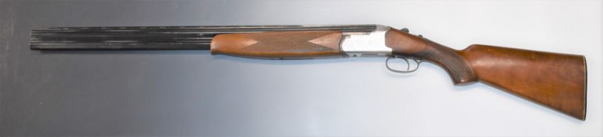 Lanber 12 bore over and under shotgun with engraved locks, chequered semi-pistol grip and forend, vented top rib, single trigger and 27.5 inch barrels choked ½ and improved cylinder, overall length 112cm, length of pull 35.5cm, serial number 132672. PLEASE NOTE THAT A VALID RELEVANT FIREARMS/SHOTGUN CERTIFICATE IS REQUIRED TO HANDLE/PURCHASE THIS ITEM.