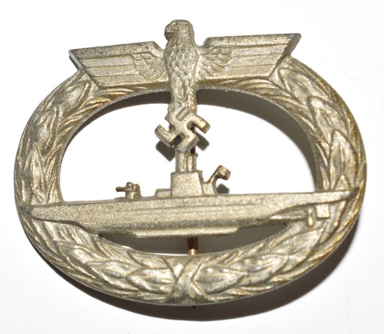 Eight WW2 German Nazi Third Reich badges comprising two eagles for wear on Navy summer tunic, pin badge for the National Socialist Women's League, E Boat badge 2nd pattern with maker's mark SA with pin and retention hook, U Boat badge, High Seas Fleet Badge, Coastal Artillery badge and a 'Blockade Runner Badge' Otto Placzek, Berlin to reverse