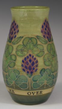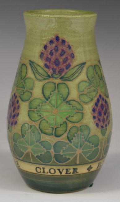 Dennis Chinaworks signed limited edition 7/49 teardrop vase with motto 'Roll me over in the clover', H14cm