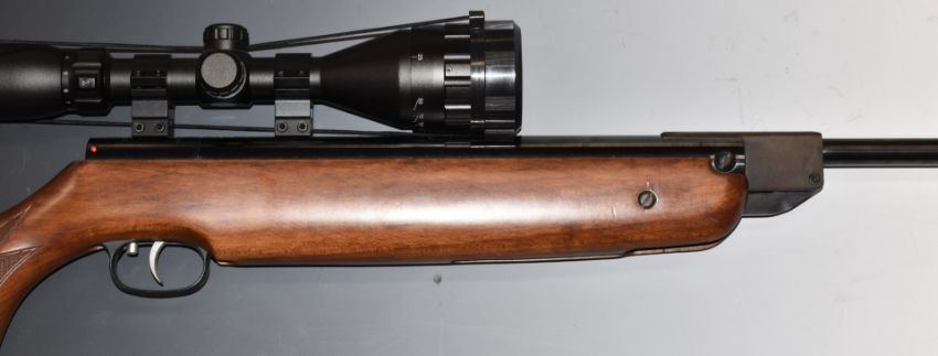 Weihrauch HW80K .22 air rifle with chequered semi-pistol grip, raised cheek piece, adjustable trigger, sound moderator and Hawke MAP Pro 3-9x50 scope, serial number 1772489.