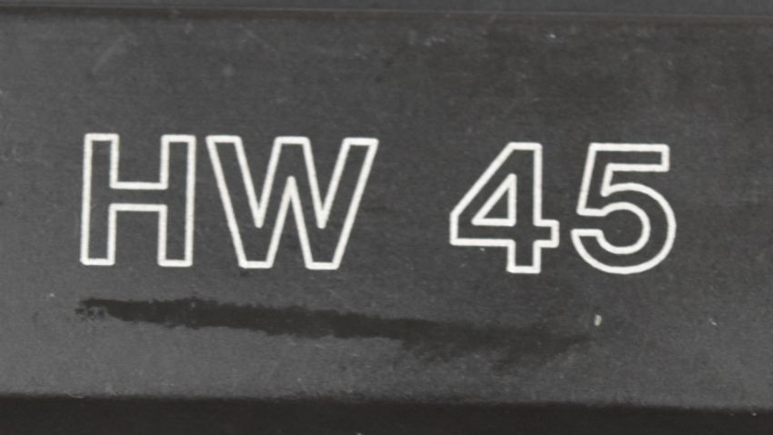 Weihrauch HW45 .177 air pistol with chequered wooden grips and adjustable sights and trigger, serial number 399459, in original box with instructions.