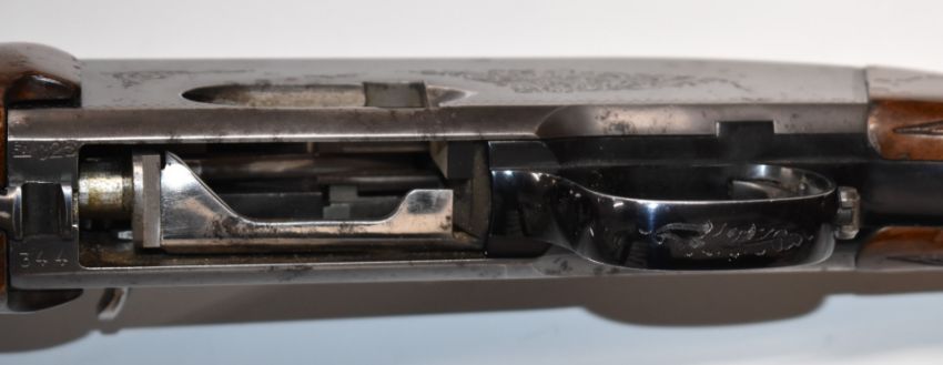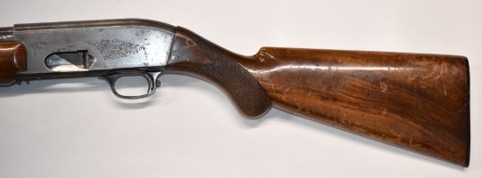 Browning 12 bore two-shot semi automatic shotgun with engraved locks, chequered semi-pistol grip and forend and 29.5 inch barrel choked improved cylinder, overall length 124cm, length of pull 36.5cm, serial number C25344. PLEASE NOTE THAT A VALID RELEVANT FIREARMS/SHOTGUN CERTIFICATE IS REQUIRED TO HANDLE/PURCHASE THIS ITEM.