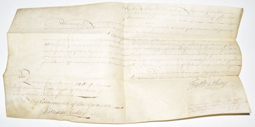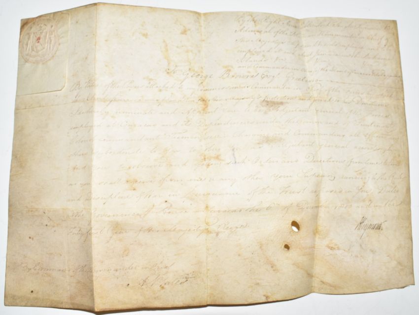 Georgian George III commission for George Browne to be 'Adjutant to the Royal Marine Forces' dated 13th September 1804 and signed by George III together with with commissions for George Browne 49th Company of Marines to be Port Major of the citadel on the islands of Caracas and Quartermaster to Marines and Naval Forces serving in the island of Caracas dated 17th October 1800 and a further commission dated 6th December 1800 to be Adjutant General of the forces employed at Caracas and its dependencies