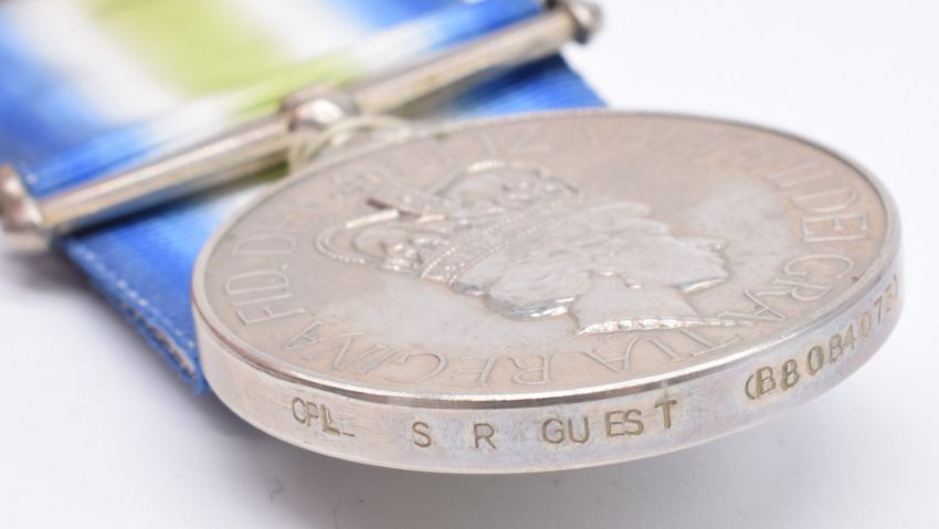 Royal Air Force medal pair South Atlantic Medal and General Service Medal named to Leading Aircraftsman S R Guest 88084073, RAF (Cpl to South Atlantic Medal), with miniatures