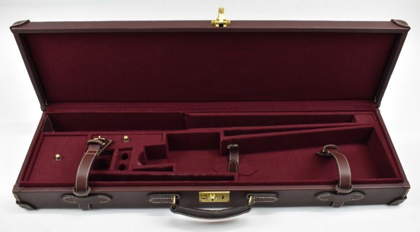 Guardian leather bound shotgun carry case with felt lined fitted interior, 83x24x10cm.