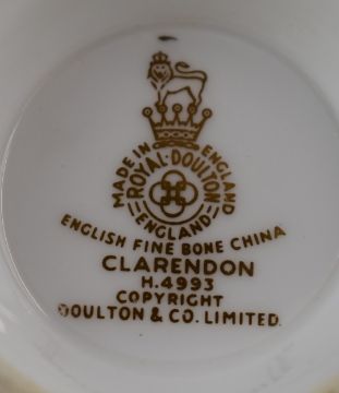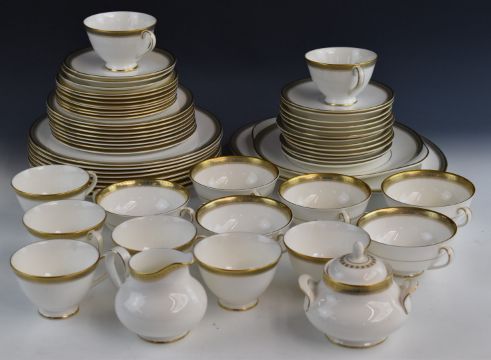 Approximately fifty seven pieces of Royal Doulton dinner and teaware decorated in the Clarendon pattern