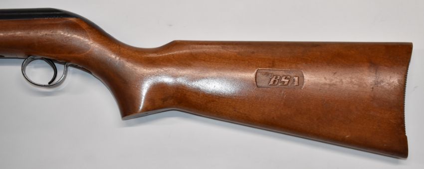 BSA Cadet Major .177 air rifle with semi-pistol grip, impressed logo to the stock and adjustable sights, serial number C21825.