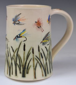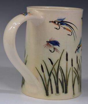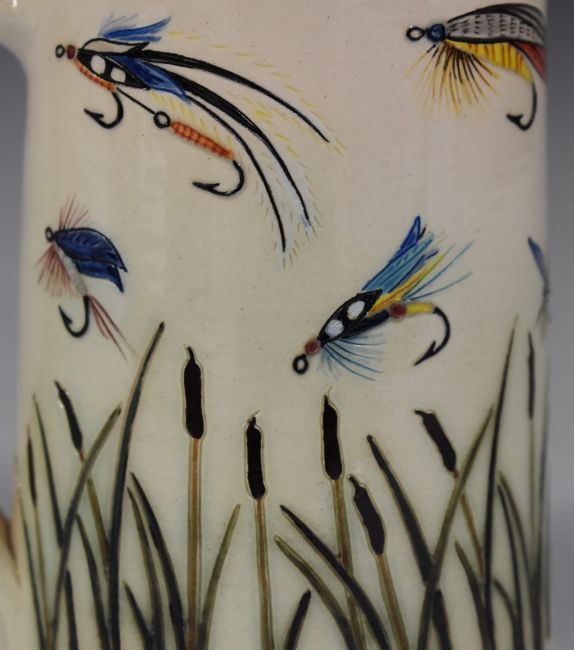 Dennis Chinaworks signed limited edition 6/50 fly fishing tankard with monogram, Southfield and 2001 impressed to base, H14cm