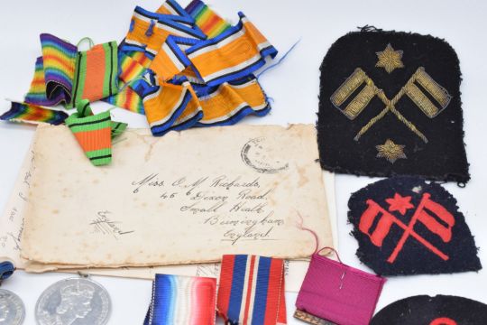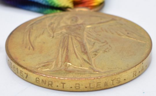 British Army WW1 medal pair comprising War Medal and Victory Medal named to 136157 Gunner T B Lewis, Royal Artillery, together with a WW1 1914-1915 Star named to 16193 Pte A E Bant, Oxfordshire and Buckinghamshire Light Infantry, silver War Badge number 268548, Coronation, Jubilee medals, Royal Dragoons interest Christmas card and framed photograph c1930 etc