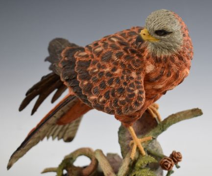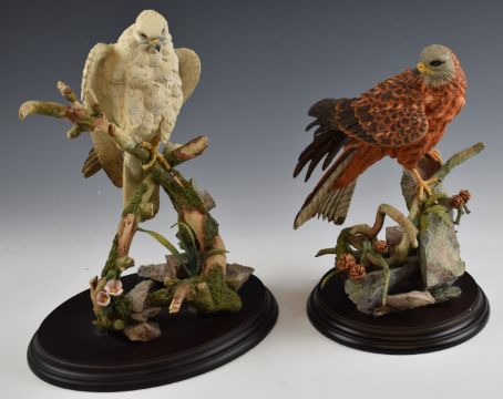 Two Country Artists bird of prey figures red kite on fern and larch cones and 'Arctic Prince', tallest 35cm