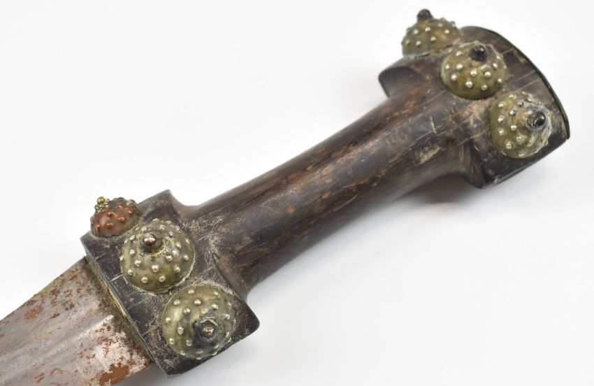 Eastern dagger with wooden handle and 21cm blade, with sheath. PLEASE NOTE ALL BLADED ITEMS ARE SUBJECT TO OVER 18 CHECK ON COLLECTION OR DELIVERY