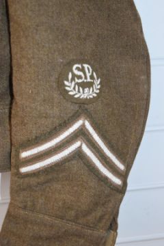 WW2 British Army battle dress blouse 1940 pattern, size 7, with Queen's Regiment shoulder titles, proficiency SP badge & cuff chevrons, together with a side cap