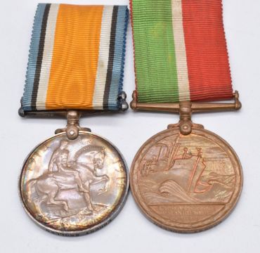 Mercantile Marine War Medal and WW1 War Medal both named Ernest Boullen