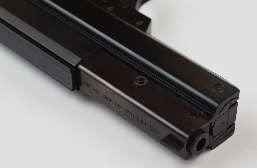 BSA .22 target air pistol with shaped wooden grips and adjustable trigger and sights, serial number AN01410.