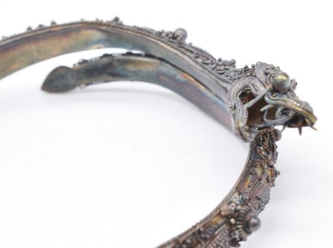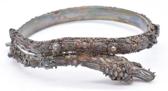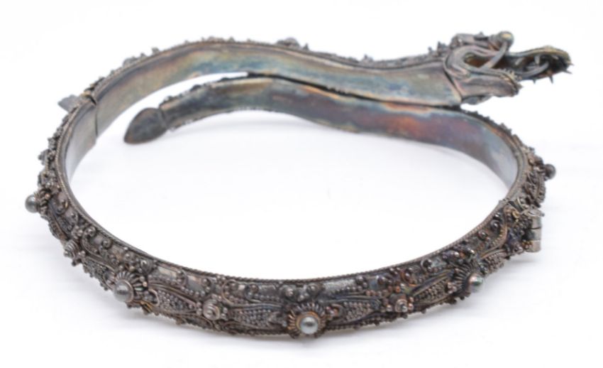 A late 19th/ early 20thC silver filigree bangle in the form of a dragon