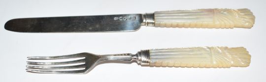 Cased set of William IV mother of pearl handled fruit knives and forks, comprising eight forks and twelve knives, Birmingham 1829, maker Joseph Willmore, length of knives 19.5cm, weight of all knives and forks 743g all in